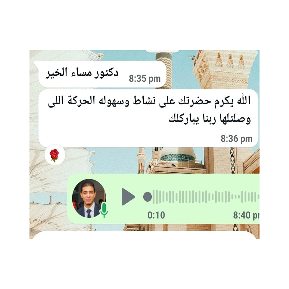 المتابعه واتساب مع الدكتور شخصيا وليس مساعدين فى حالة وجود استفسار .